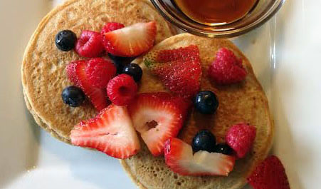 This is by far the best gluten-free pancake recipe I have found, made with brown rice flour. They are fluffy and made with dairy-free milk. They do require one egg but you could easily substitute a duck egg or try other egg substitutes like flaxseed (1 Tbsp flaxseed meal + 2.5 Tbsp water) or mashed banana (1 medium banana or 1/4 c mashed for 1 egg).